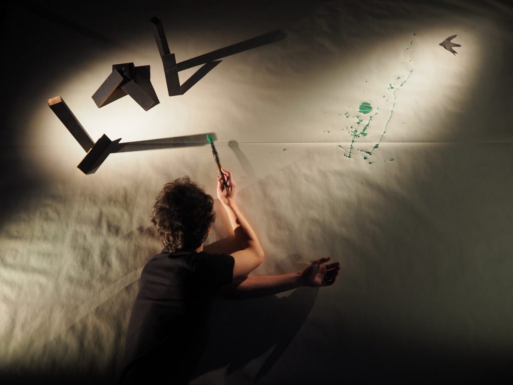 O Ploc do Pollock é um espectáculo sobre a descoberta de histórias através da pintura e desenhos abstratos.
